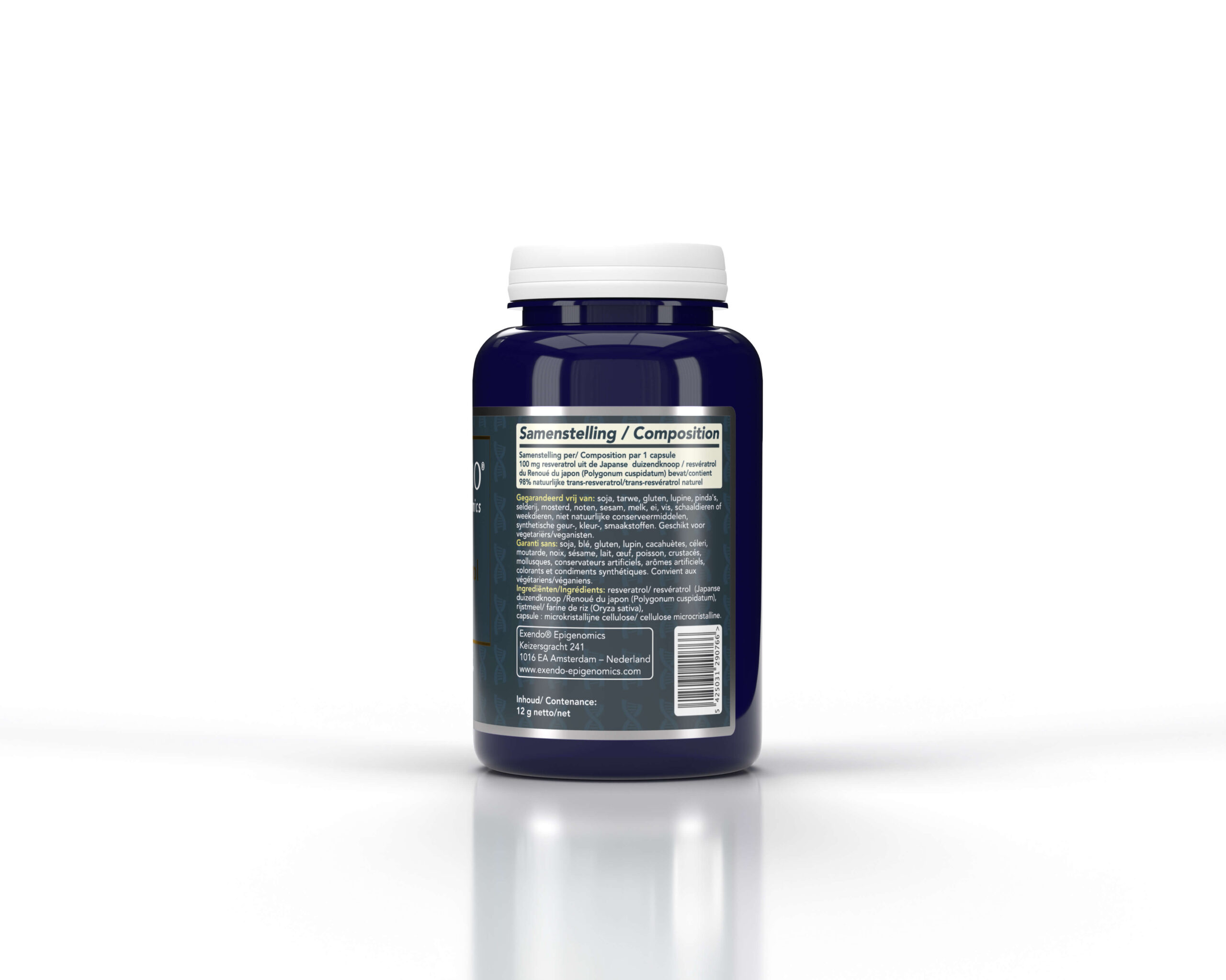 | Bijzonderheden | Resveratrol 100 is een samenstelling van Exendo® Epigenomics. | |||||||||||||